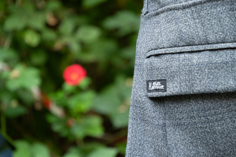 Voor upcyclespecialist rEBEL REMAKE fotografeerde ik een reeks geüpcyclede colberts, broeken en tassen. Van oude herenpakken maakt Marsha de Koning Man gecropte jasjes, rokjes, korte broeken, tassen en andere accessoires.