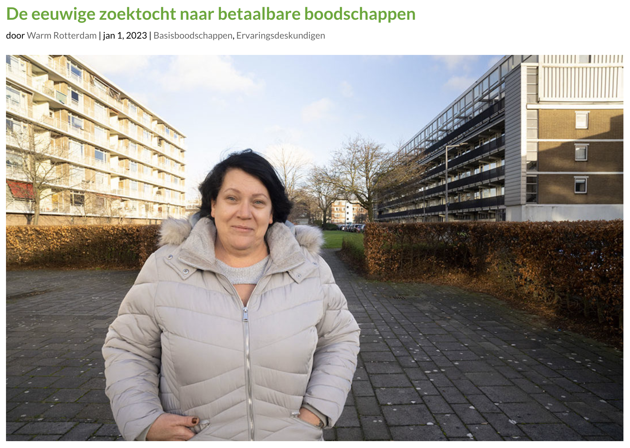 Nauwelijks verse groenten, geen lunch op school of werk en als avondeten diepvriesfastfood: voor mensen die in armoede leven is dit dagelijkse kost. Wie van 50 euro per week moet leven, lukt het vaak al niet om één gezonde maaltijd per dag op tafel te zetten. Laat staan drie. Daarom moeten basisboodschappen voor iedereen betaalbaar worden. Ervaringsdeskundige Monique legt uit waarom. ‘Boodschappen worden écht iedere week duurder.’ VOOR Warm Rotterdam WAT artikel WANNEER januari 2023 LINK www.warmrotterdam.nl De